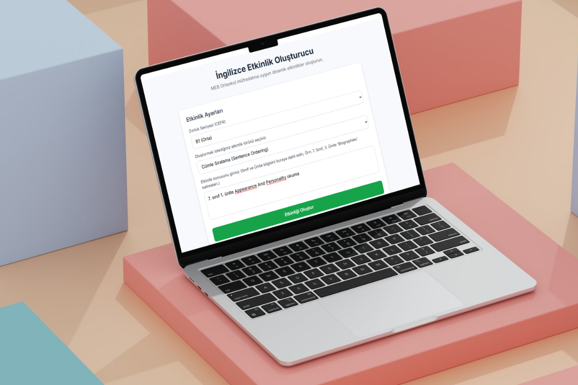 119Herkese merhaba. Sizlerle Gemini ile oluşturduğum İngilizce etkileşimli içerik tasarlama robotunu paylaşacağım. Bu akıllı robot sayesinde MEB İngilizce dersi sınıf, ünite ve konularına yönelik pratik bir şekilde çoktan seçmeli, eşleştirme, boşluk doldurma gibi etkinlikler hazırlayabilirsiniz. Yapmanız gereken tek şey uygulamayı açıp, seviye seçerek istediğiniz sınıf, ünite ve konu adını yazmanız.(Not: Bu uygulama sadece İngilizce etkinlikler hazırlamak için tasarlanmıştır. Diğer branşları istiyorsanız yorumlarda belirtebilirsiniz.)Gemini ile İngilizce metin oluşturma uygulaması için tıklayınEtkinlik nasıl oluşturulur?Aşağıdaki Uygulamayı Aç bağlantısını kullanarak Gemini uygulamasını çalıştırın. Daha sonra zorluk seviyesini ve etkinlik türünü seçiniz. Ardından oluşturmak istediğiniz etkinliği sınıf, ünite ve konu şeklinde yazınız. Örn, “7. sınıf, 1. ünite Appearance and personality konusu kelimeleri”Bu yazıyı yararlı buldunuz mu?Evet1Hayır0