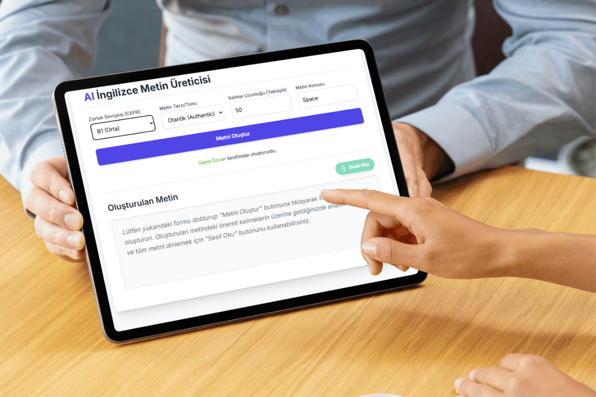 6İstediğiniz konuda, istediğiniz zorluk seviyesinde İngilizce metin oluşturmak artık çok kolay. Bu akıllı robot sayesinde MEB İngilizce dersi sınıf, ünite ve konularına yönelik pratik bir şekilde İngilizce metinler oluşturabilirsiniz. Yapmanız gereken tek şey uygulamayı açıp seviye, uzunluk ve konuyu yazmanız. Sonrasında Gemini sizin için metni oluşturacak. Üstelik oluşan metinde bazı öne çıkan kelimelerin anlamlarını üzerine gelince okuyabilecek ve metni de sesli dinleyebileceksiniz.(Not: Bu uygulama sadece İngilizce etkinlikler hazırlamak için tasarlanmıştır. Diğer branşları istiyorsanız yorumlarda belirtebilirsiniz.)Gemini ile etkileşimli içerik üretim uygulaması için tıklayınBu yazıyı yararlı buldunuz mu?Evet0Hayır0
